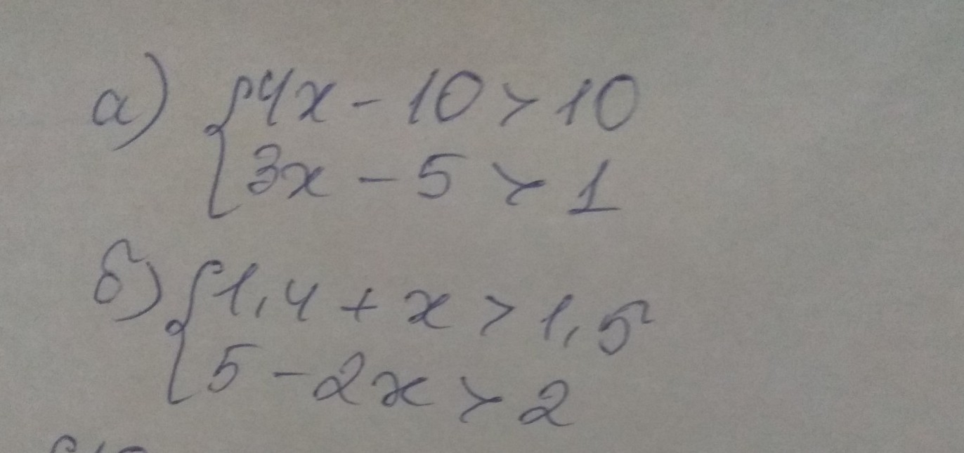 А)4х-10больше 10 4хбольше 10+10 4хбольше 20 хбольше 5