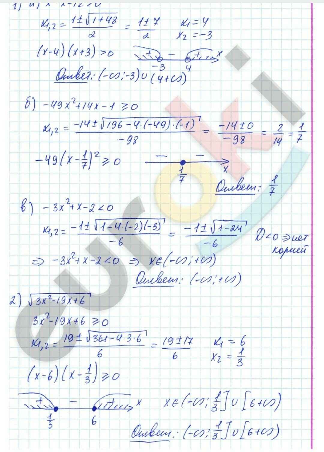 х2= -б-√Д / 2а= 19-13/2*3 = 1/3
