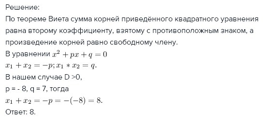 Найти сумму корней квадратного уравнения