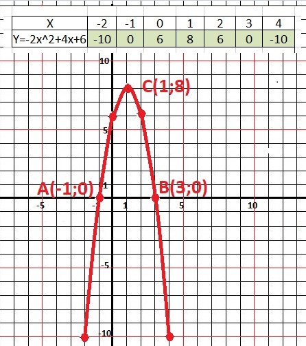 Y = - 2x² + 4*x + 6