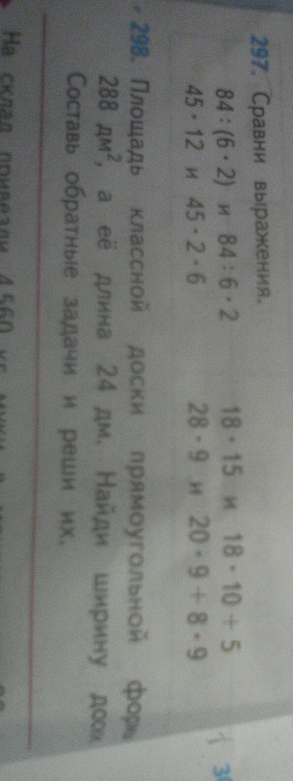 298) Ширина = площадь : длину так, как площадь прямоугольника = а * б