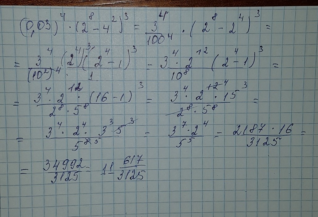 (0,03)⁴ * (2^8 - 4²)³ =