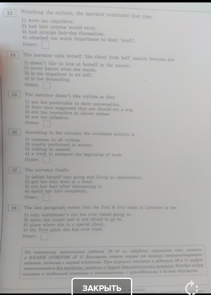 я вижу не совсем хорошо но могу помочь только так : сначала все переведи и найди ответ, а если английский у тебя 0 то забей в переводчик или попроси помочь родителей