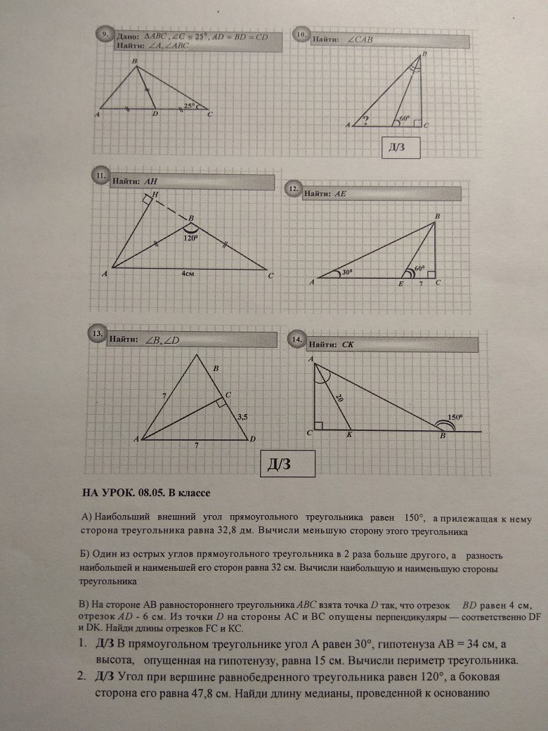 14. ΔABC ⇒ ∠B = 30° (180°-150°=30°) ∠А = 180 - 30 - 90 = 60°