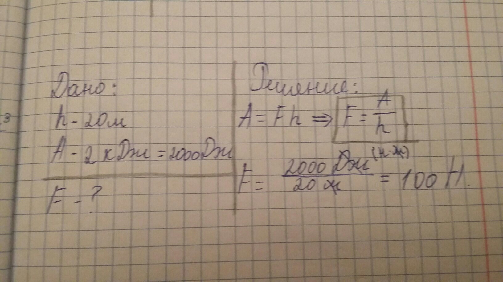 Ответ: Сила тяги 100Н. Почему ответ получился в Ньютонах? Потому что Джоуль и метр не могут сокращаться, а Джоуль это Ньютон * метр, Дж зачеркиваем, остается Н*м/м метры сокр-ся остается Н. Ответ пол-ся в Н.