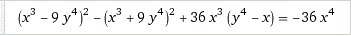 =x⁶-18x³y⁴+81y⁸-x⁶-18x³y⁴-81y⁸+36x³-36x⁴≡-36x⁴.