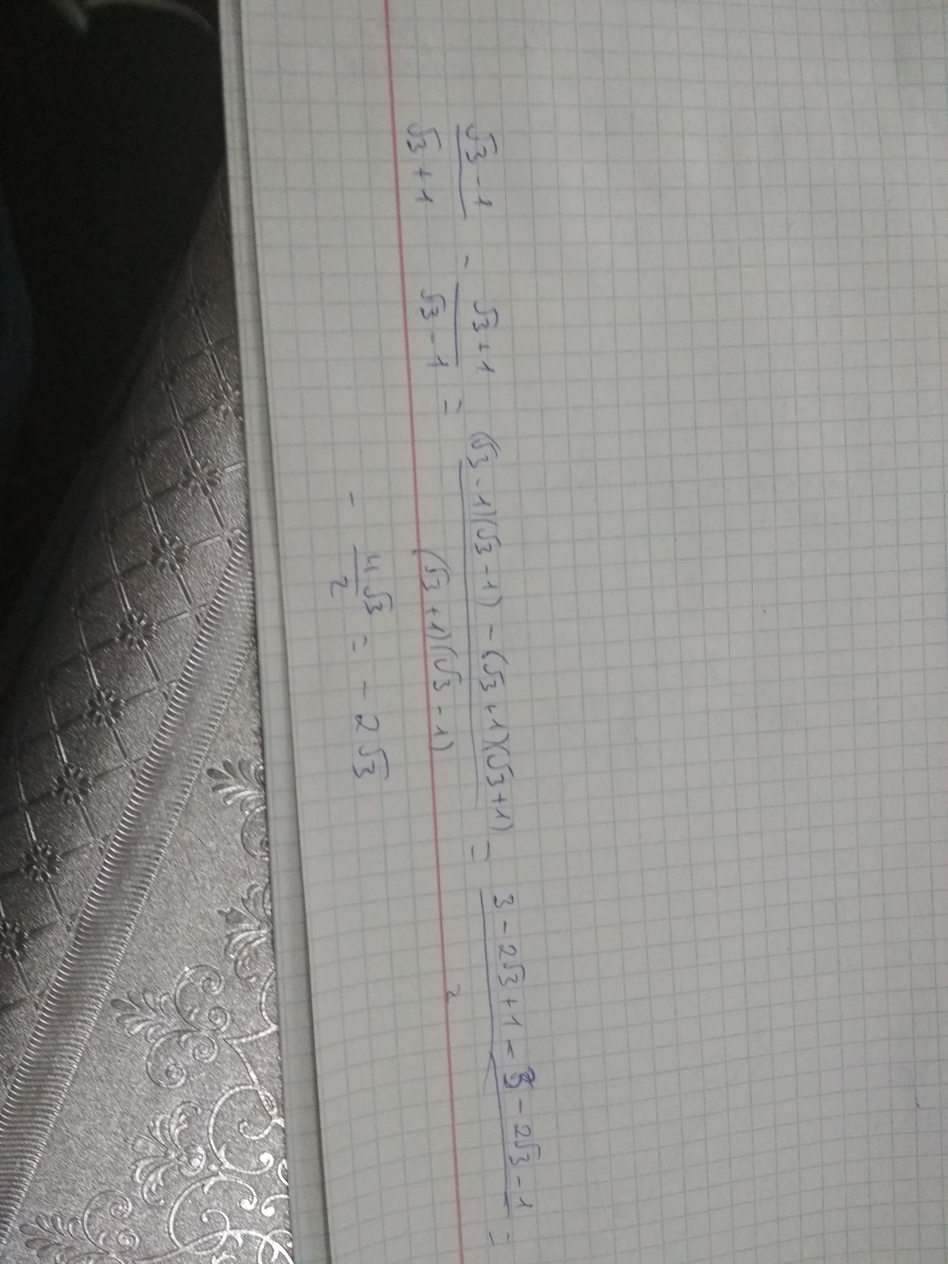 Спростіть вираз (√3-1)/(√3+1)-(√3+1)/(√3-1)