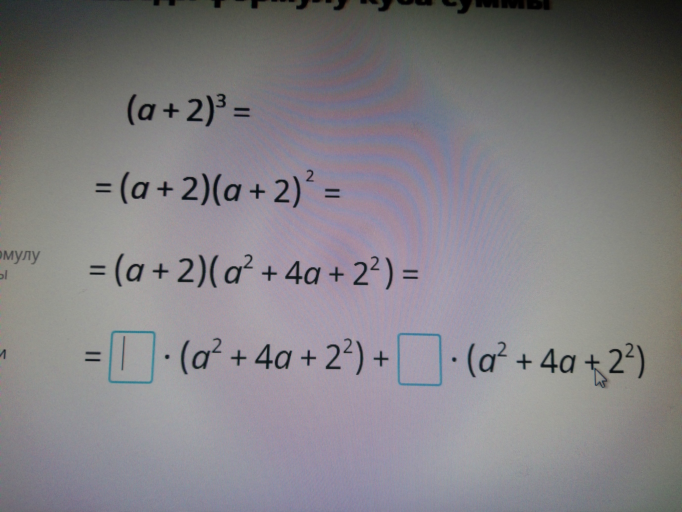 а 3 + 4а 2 + 4а + 2а 2 + 8а + 8= а 3 +6а 2+12а + 8