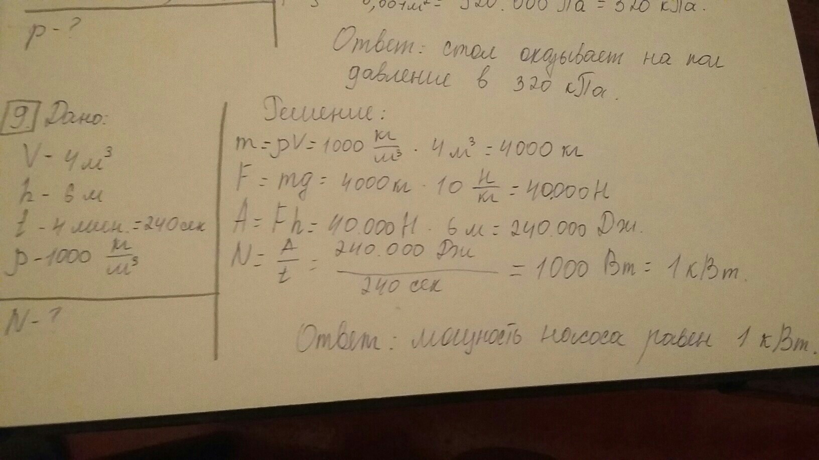 9. Определите среднюю мощность насоса, который подает воду объемом 4 м3