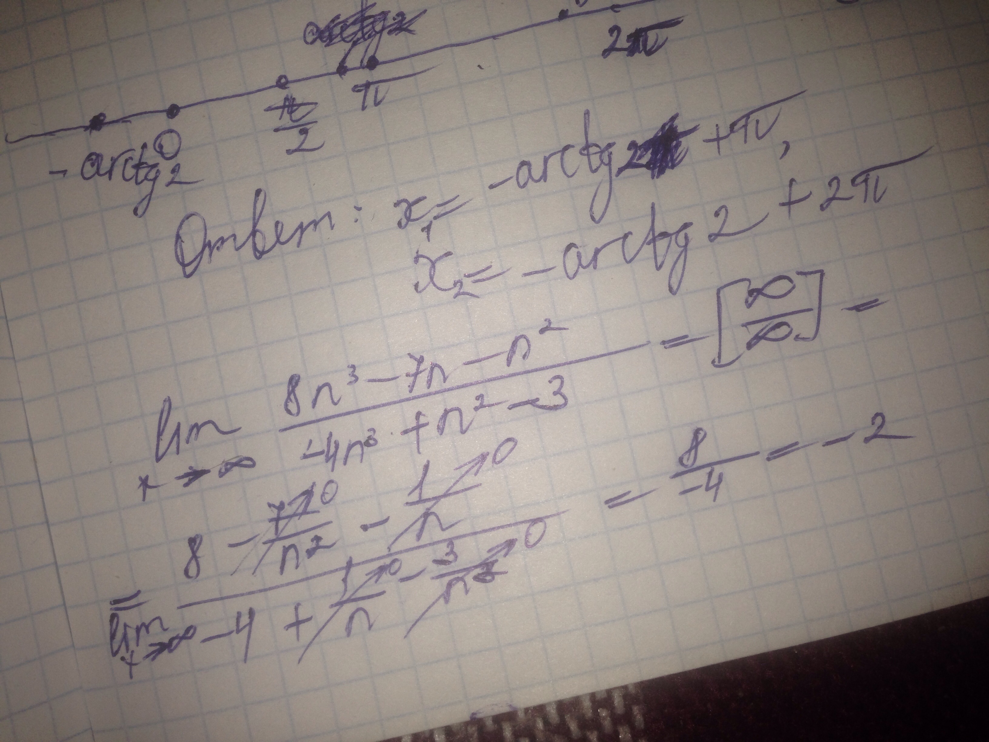 lim 8n^3-7n-n^2/n^2-4n^3-3