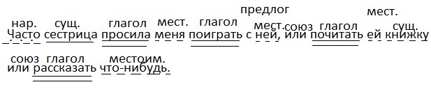 синтаксический разбор .Часто сестрица просила меня поиграть с ней , или почитать ей книжку , или рассказать что-нибудь