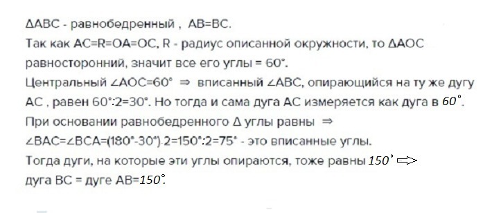 равно радиусу окружности. Найдите величины дуг АС, АВ и ВС