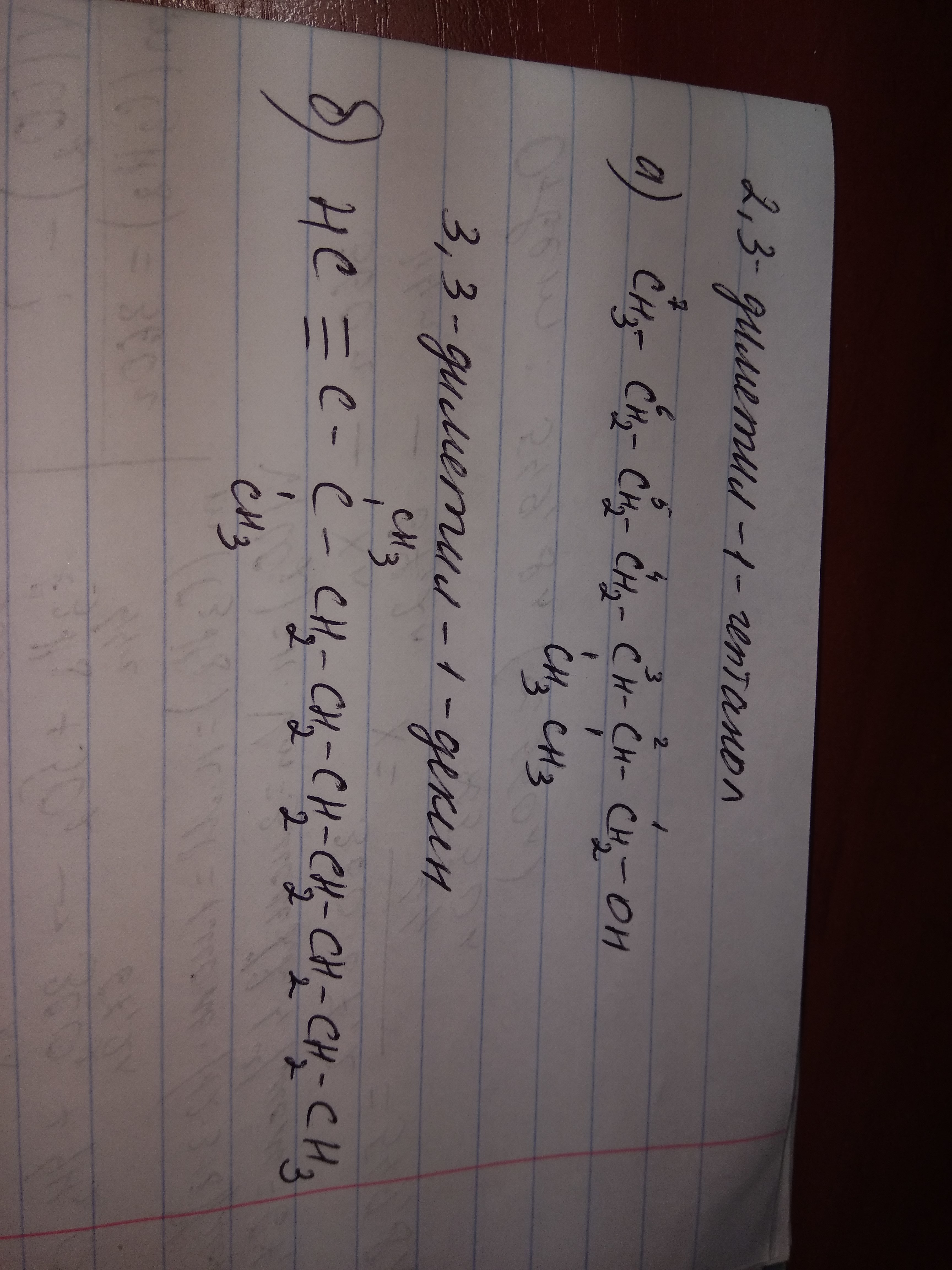 формула органического соединения а)2,3 деметил-1-гептанол;б)3,3деметил-1-декин