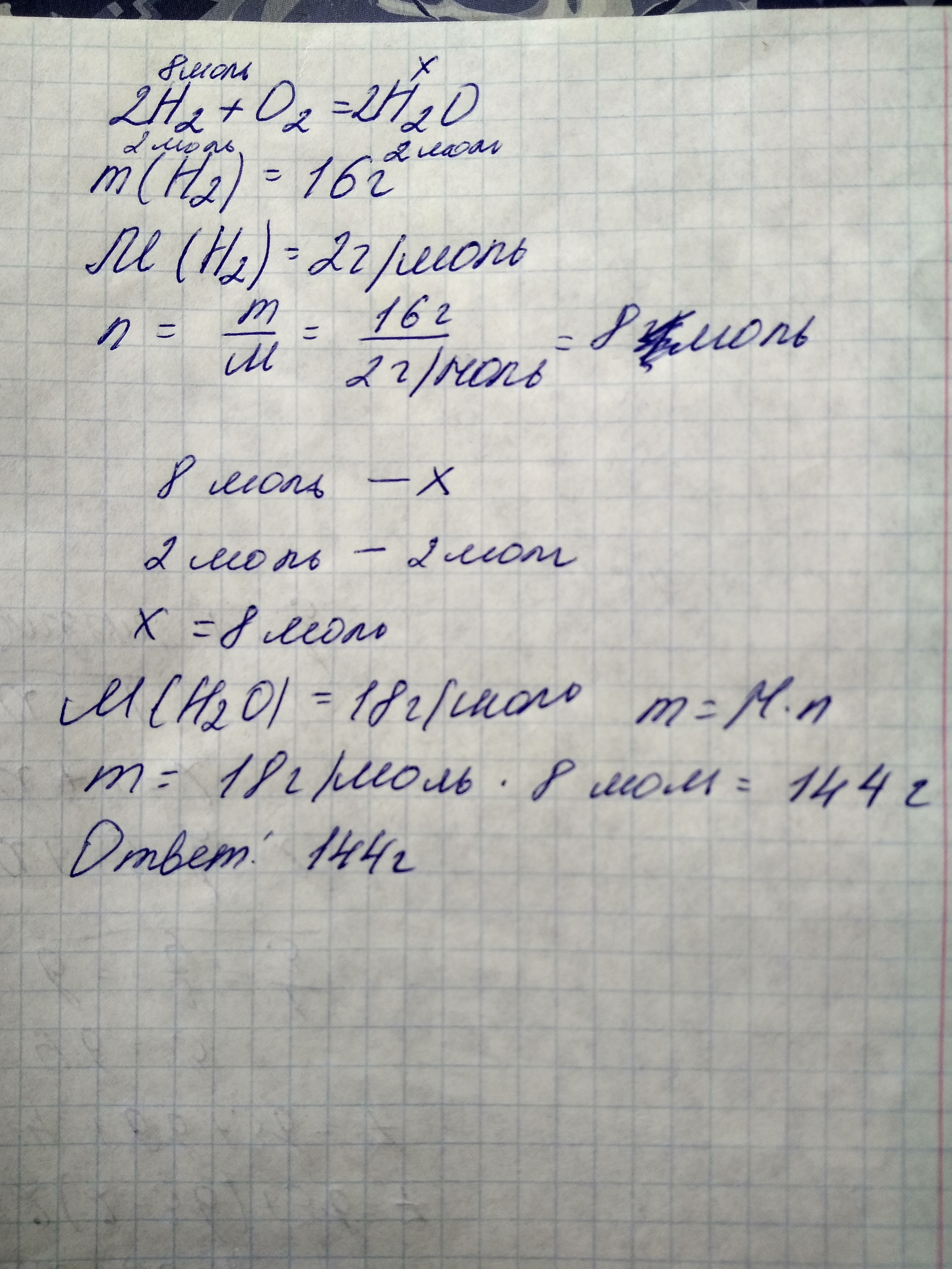 Помогите, пожалуйста !!!!!Вычислить массу образующейся воды при взаимодействии 16г. водорода с кислородом.