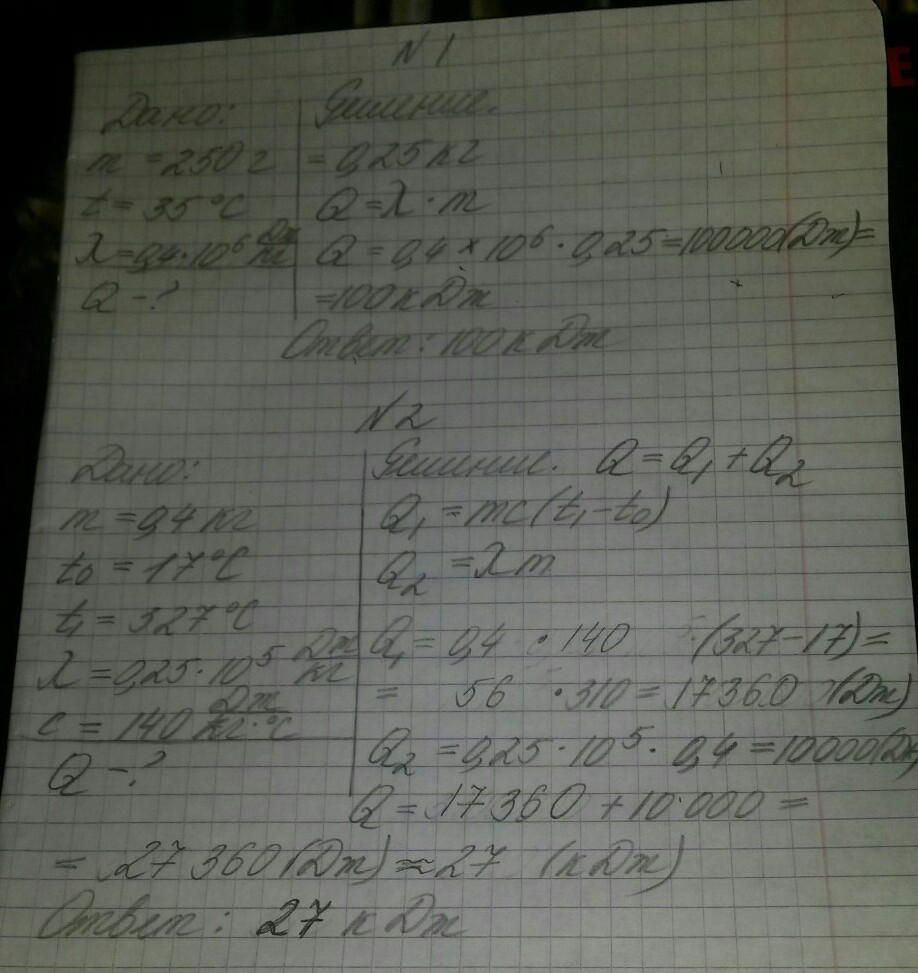 2) Q1=cm(t2-t1); c=140Дж/кг*гр.С Описка.