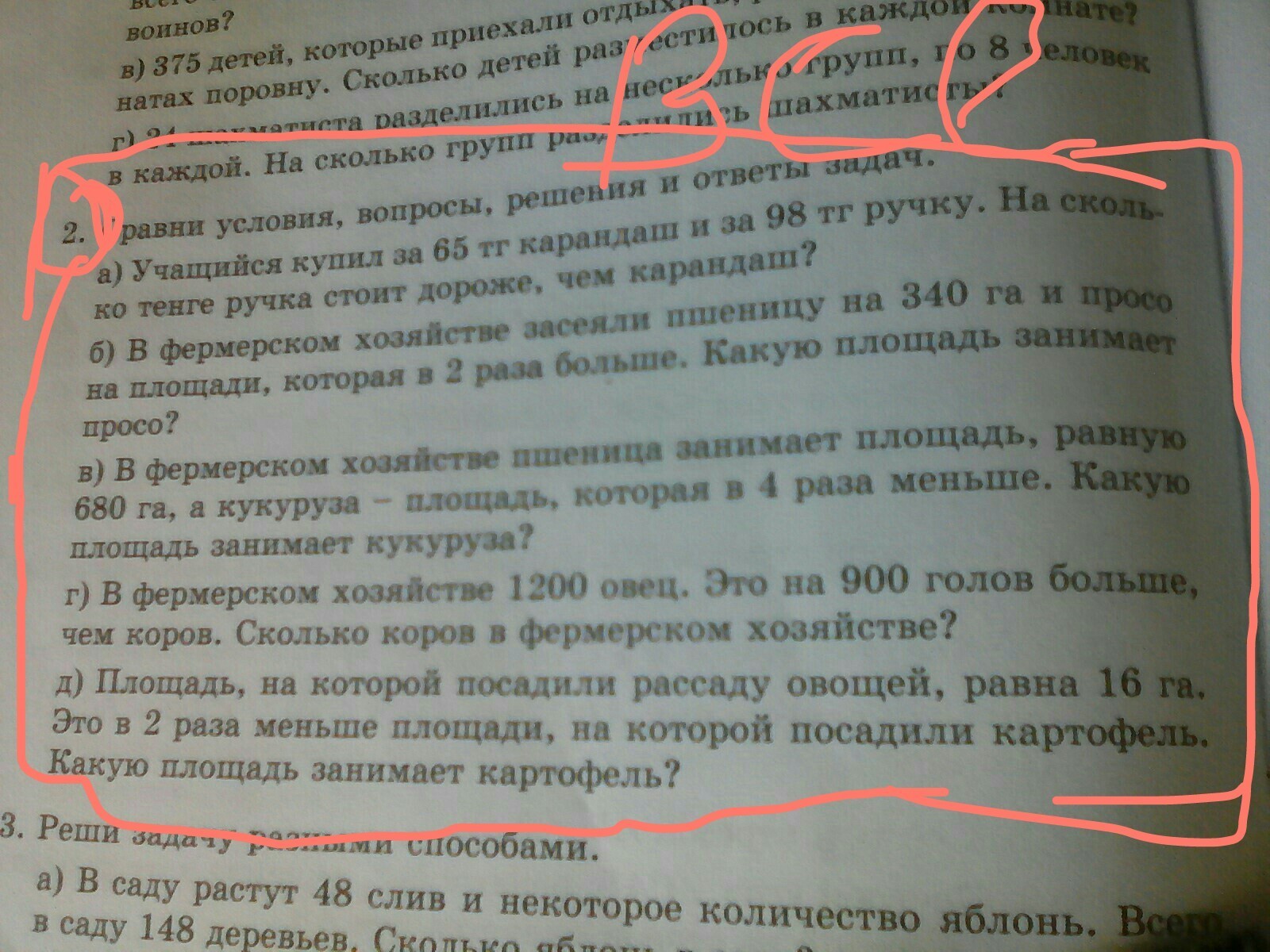 д)16:2=8 - площадь которую занимает картофель