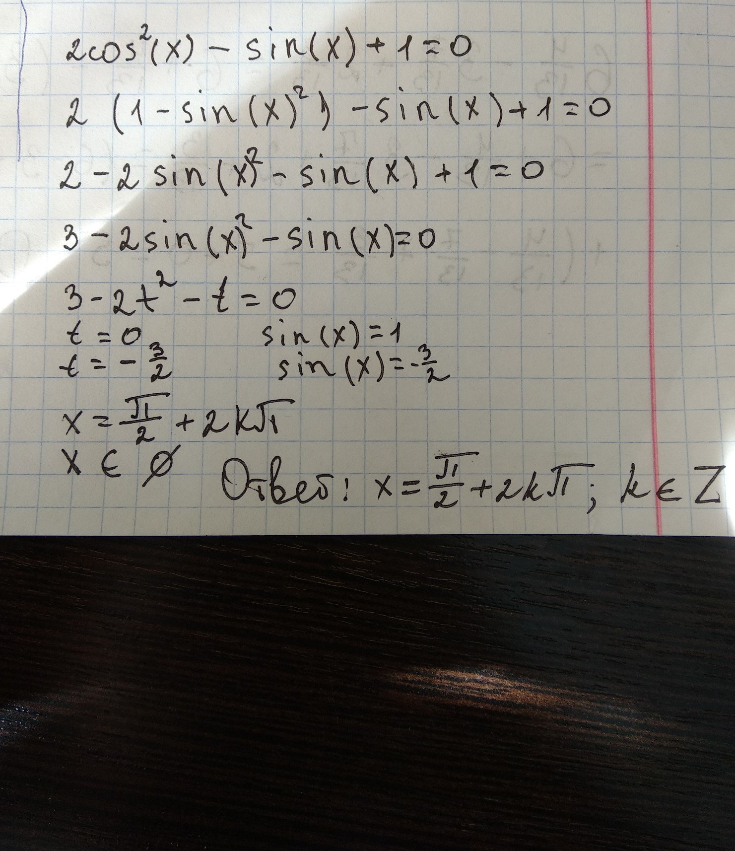 2cos^2x-sinx+1=0 помогите решить, пожалуйста.