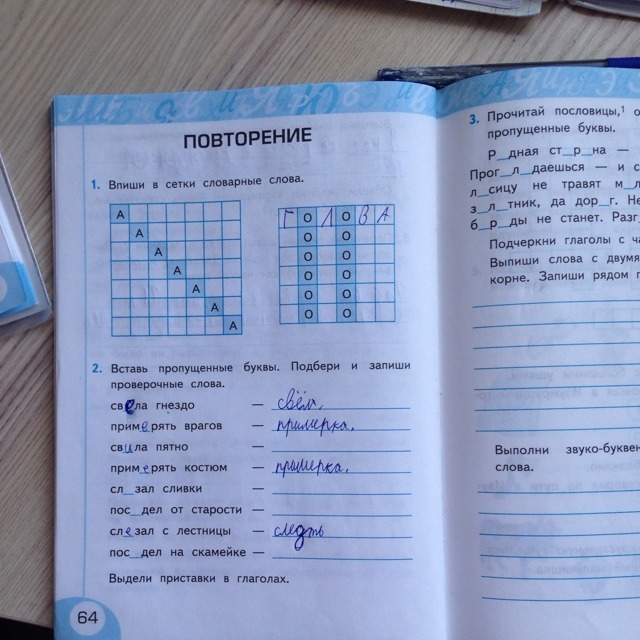 2. свила гнездо - вить,примирять врагов - мир,свела пятно - свёл,слизал сливки - лижет,поседел от старости - сед,слезал с лестницы - лезть,посидел на скамейке - сидя.