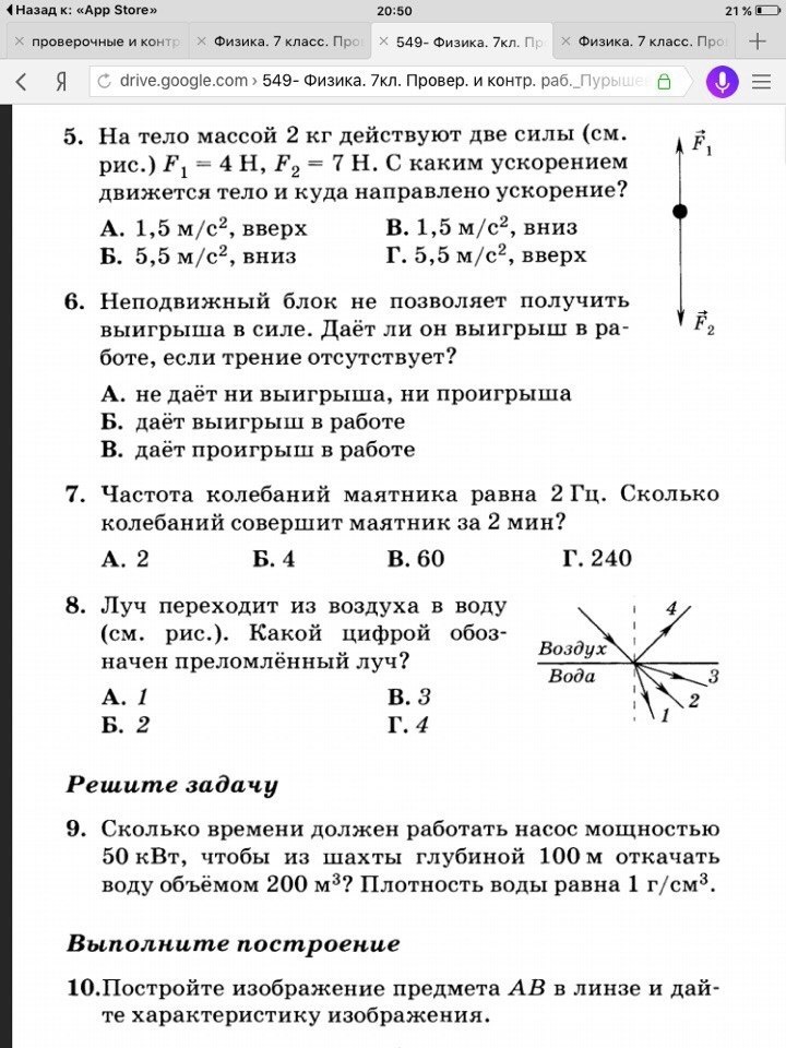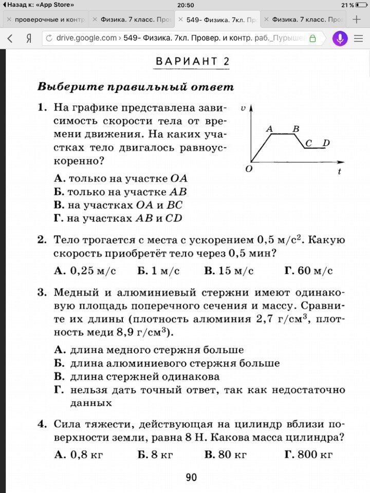 7 класс. Физика. Решите пожалуйста другой вариант тоже:3 А то я рили все 4 решить не успею пожаалуйста