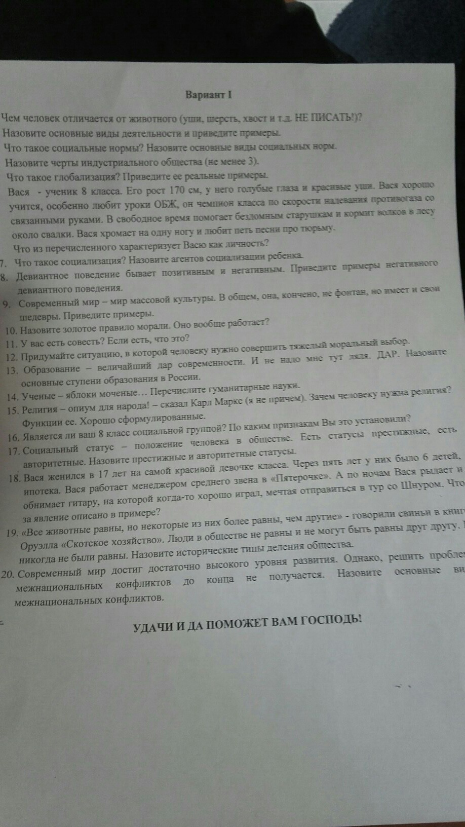 6. Ученик 8 класса, Вася хорошо учится, помогает бездомным старушкам и кормит волков в лесу, любит петь песни про тюрьму.