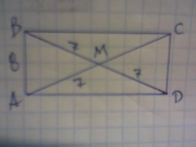 Диагонали в прямоугольнике равны, значат ВМ=АМ=7