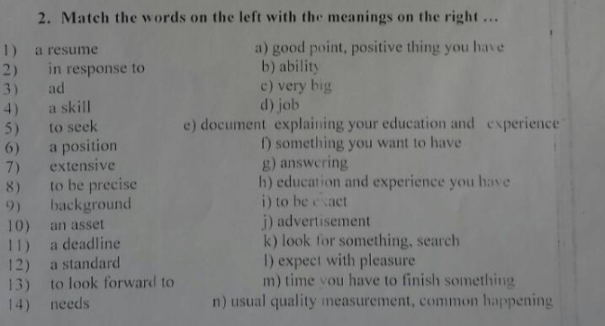 1 e 2 g 3 j 4 b 5 k 6 d 7 c 8 i 9 h 10 a 11 m 12 n 13 l 14 f