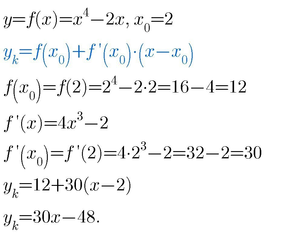 Помогите пожалуйста, нужна ваша помощь. Написать уравнение касательной к графику функции y=f(x) в точке с абсциссой х0=1, если у=х4-2х.. Помогите, очень срочно