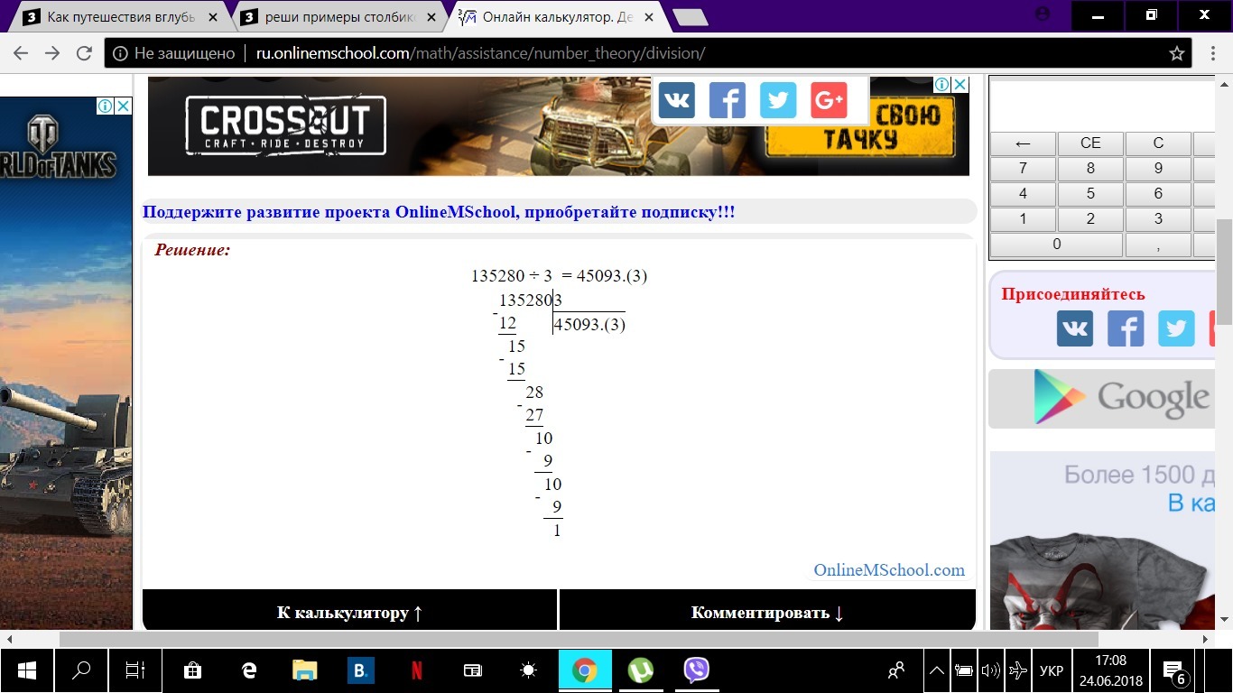 реши примеры столбиком 135280÷3