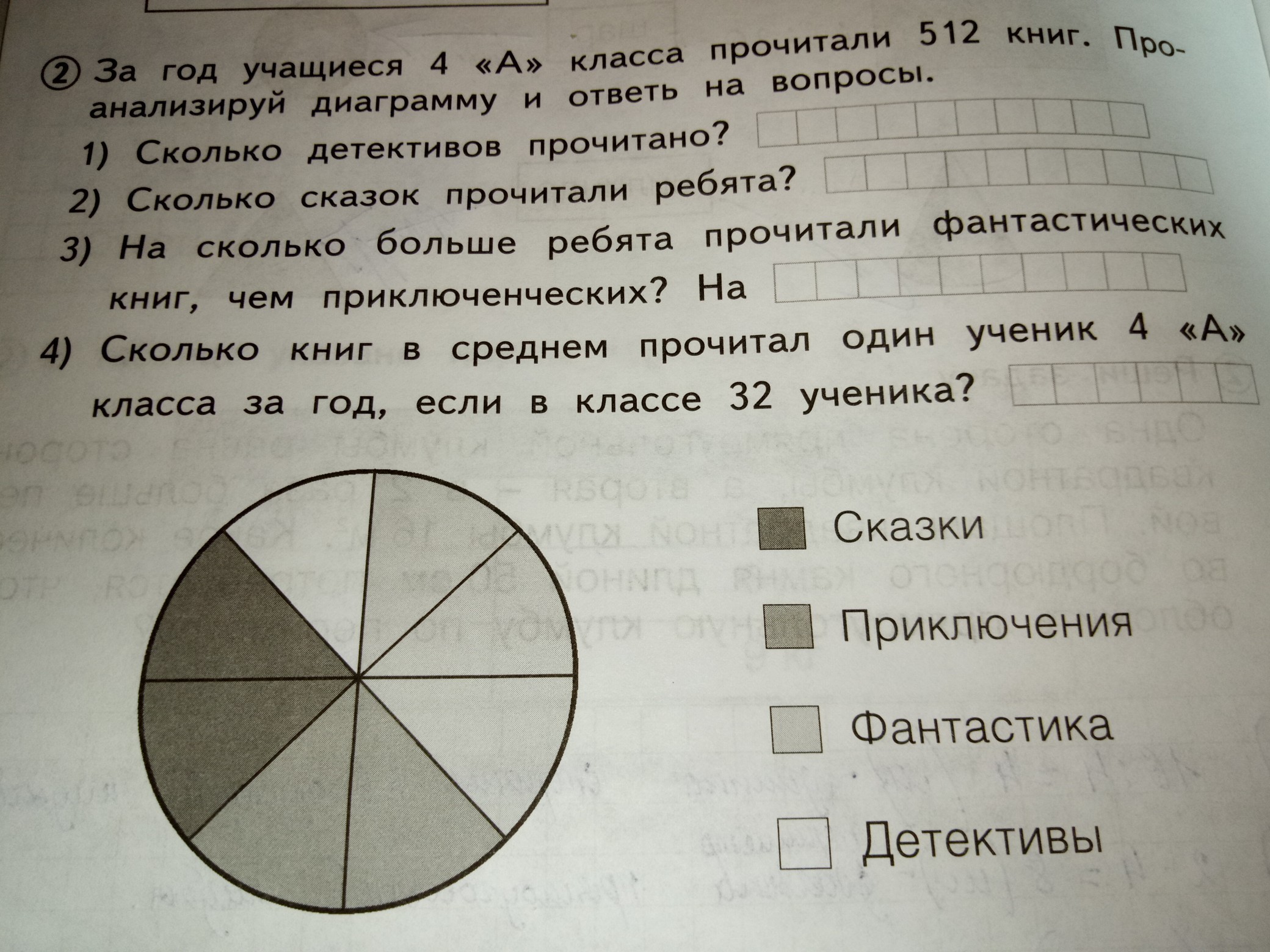 192-128=на64 книг больше прочитали фантастических