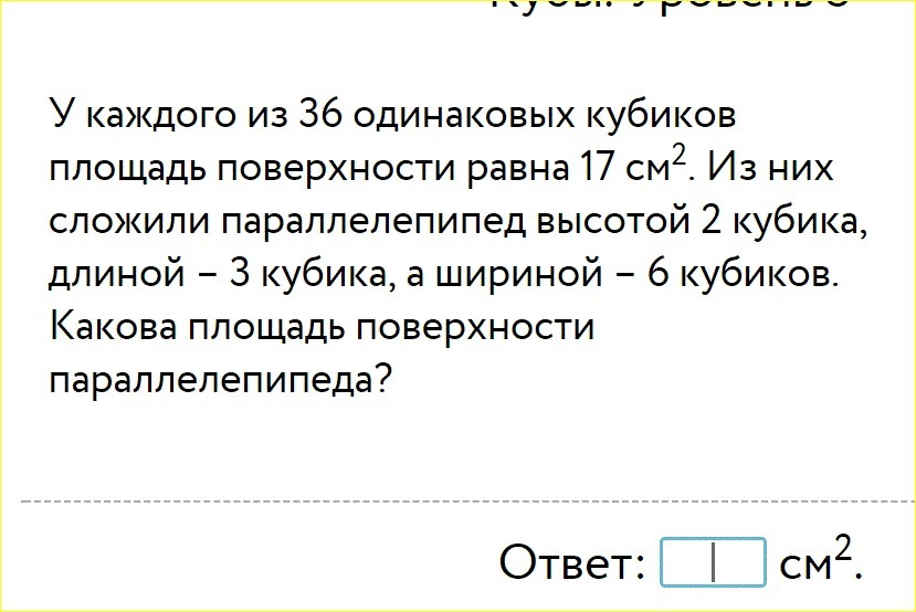 Площадь грани кубика равна см².