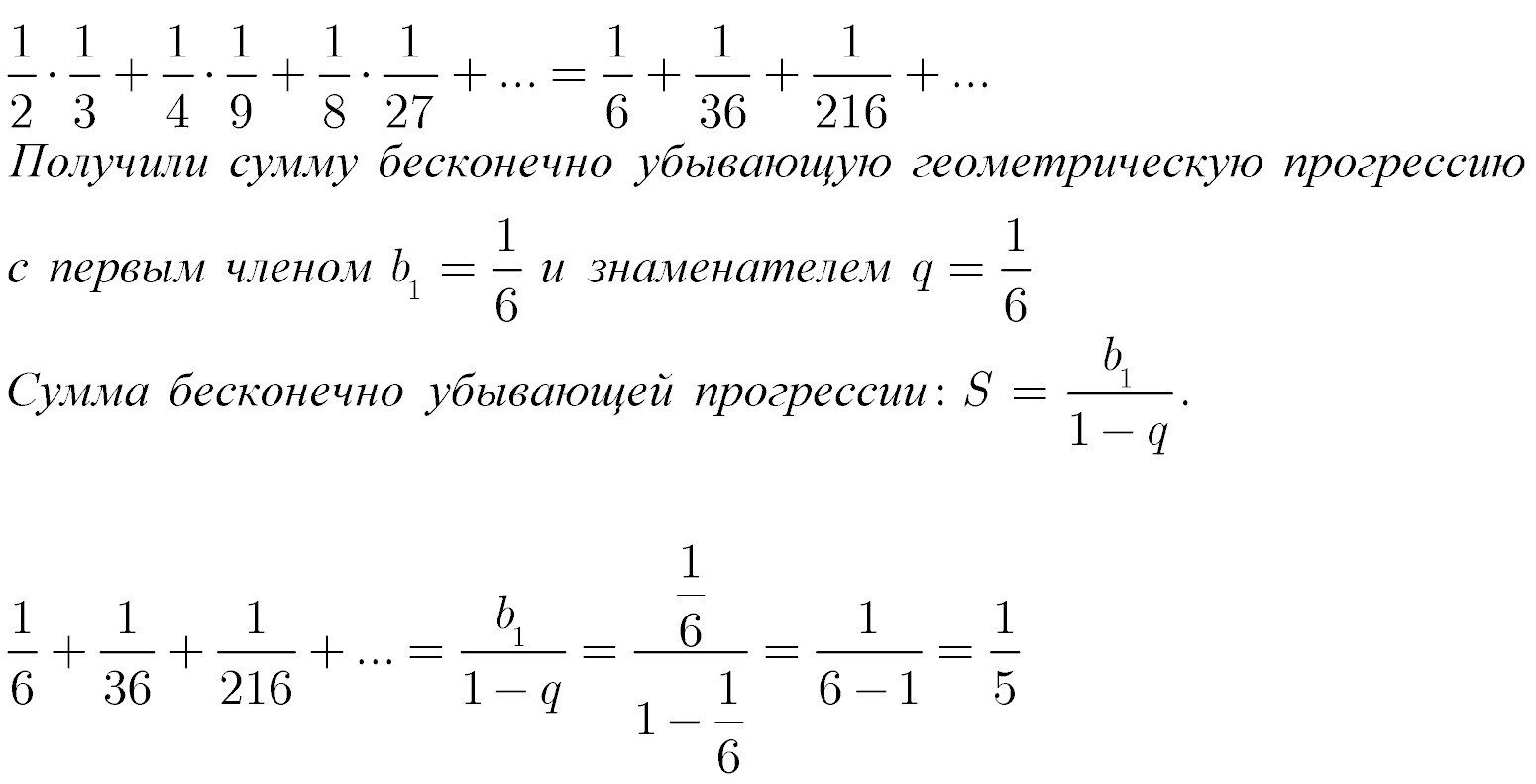 неверно, в числителе суммы беск. убыв. геом. прогр. должно быть 1/6.