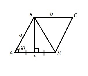 В параллелограмме ABCD угол А равен 60°. Высота ВЕ делит сторону AD на две равные части. Найдите длинну диагонали BD, если периметр параллелограмма равен 48 см