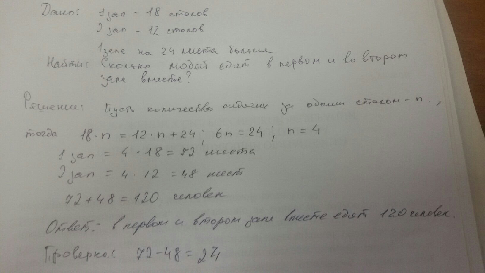 В столовой в первом зале 18 столов. а во втором зале 12 столов. Сколько ест во первом и во втором зале вместе если в первом на24 мест больше чем во втором