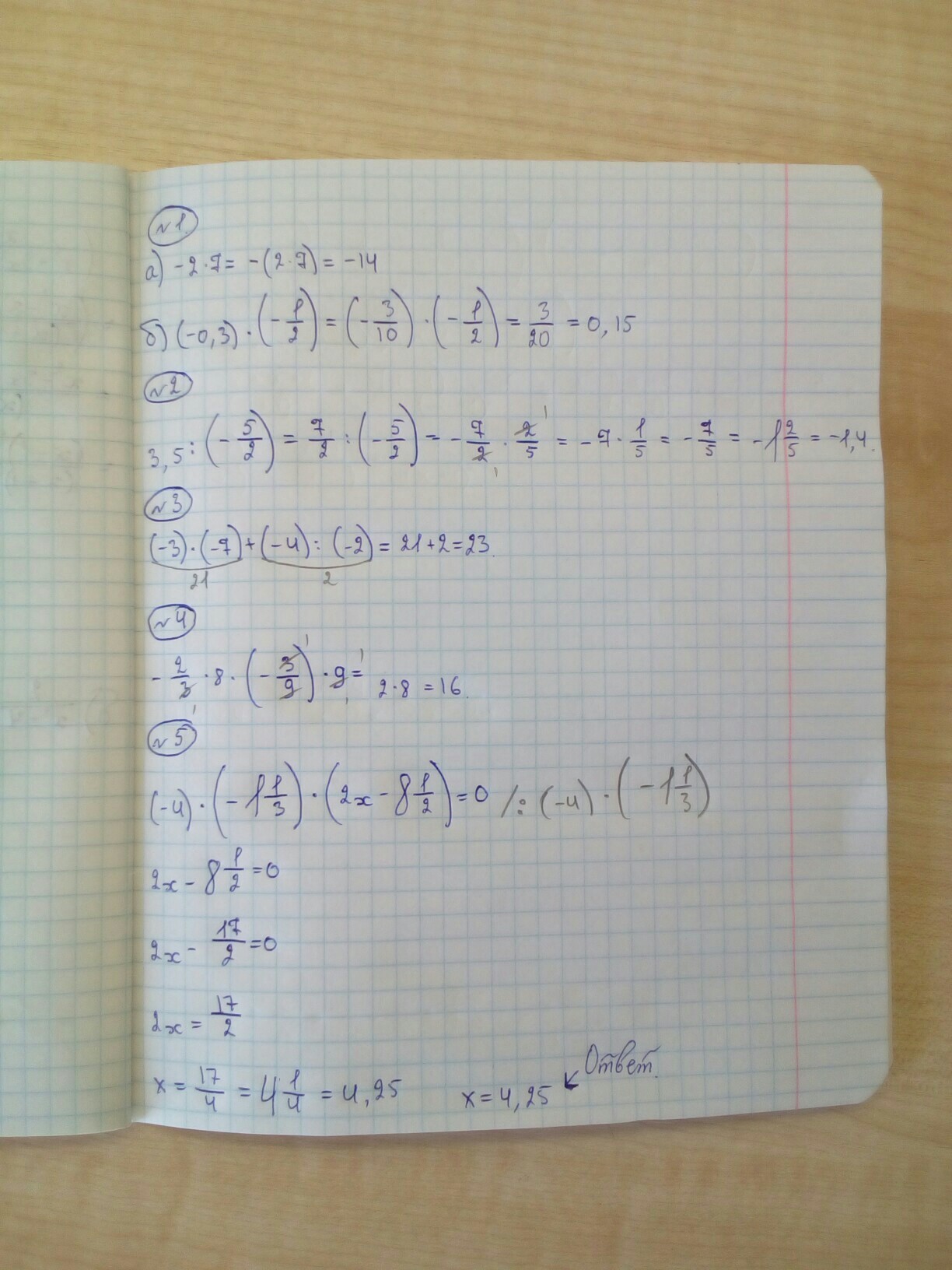 5 решите уровнение (-4)*(1 1/3)*(2x -8 1/2)=0