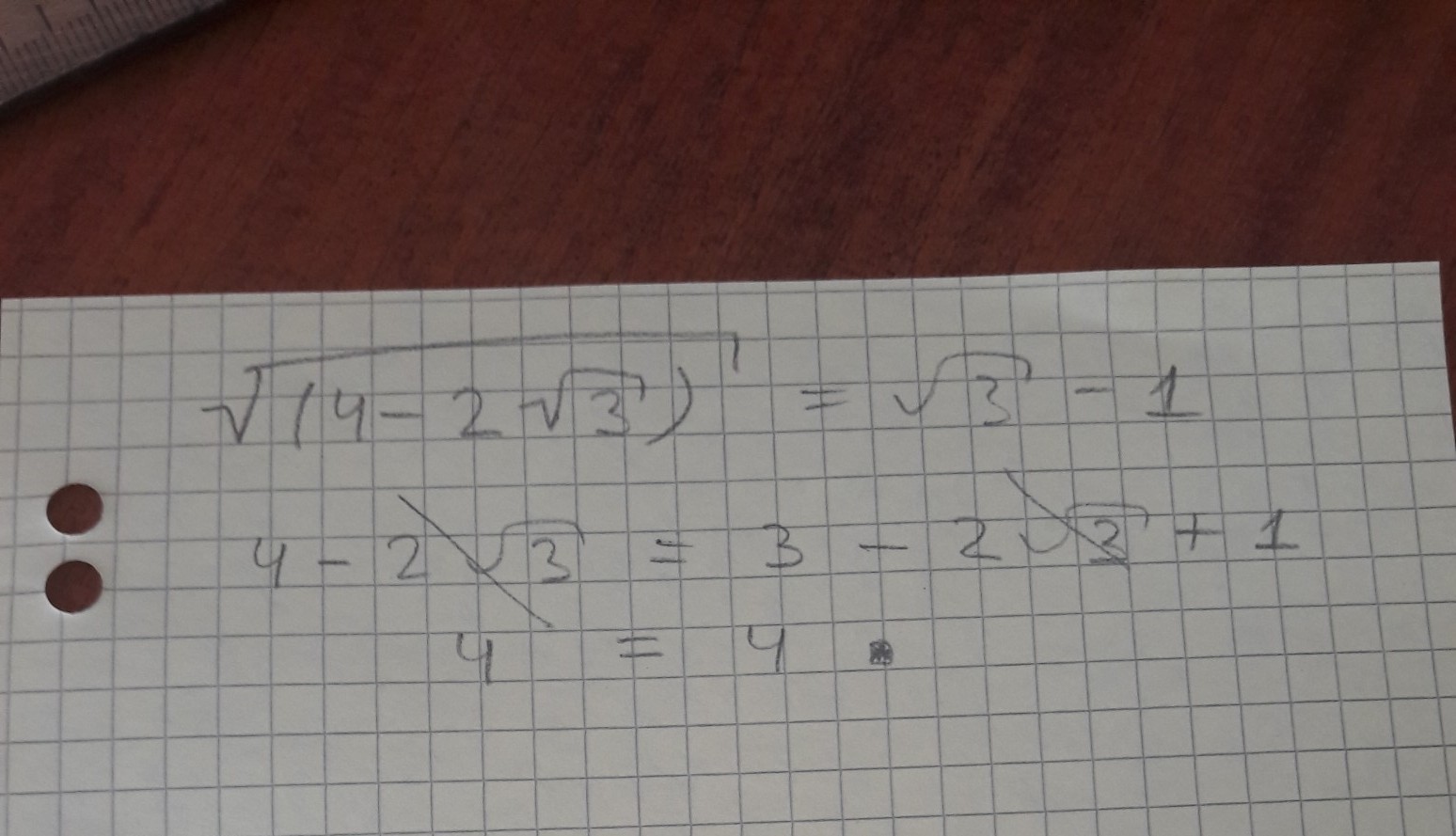 квадрат выражения под корнем равен самому числу, не точно использовалась формула сокращенного умножения