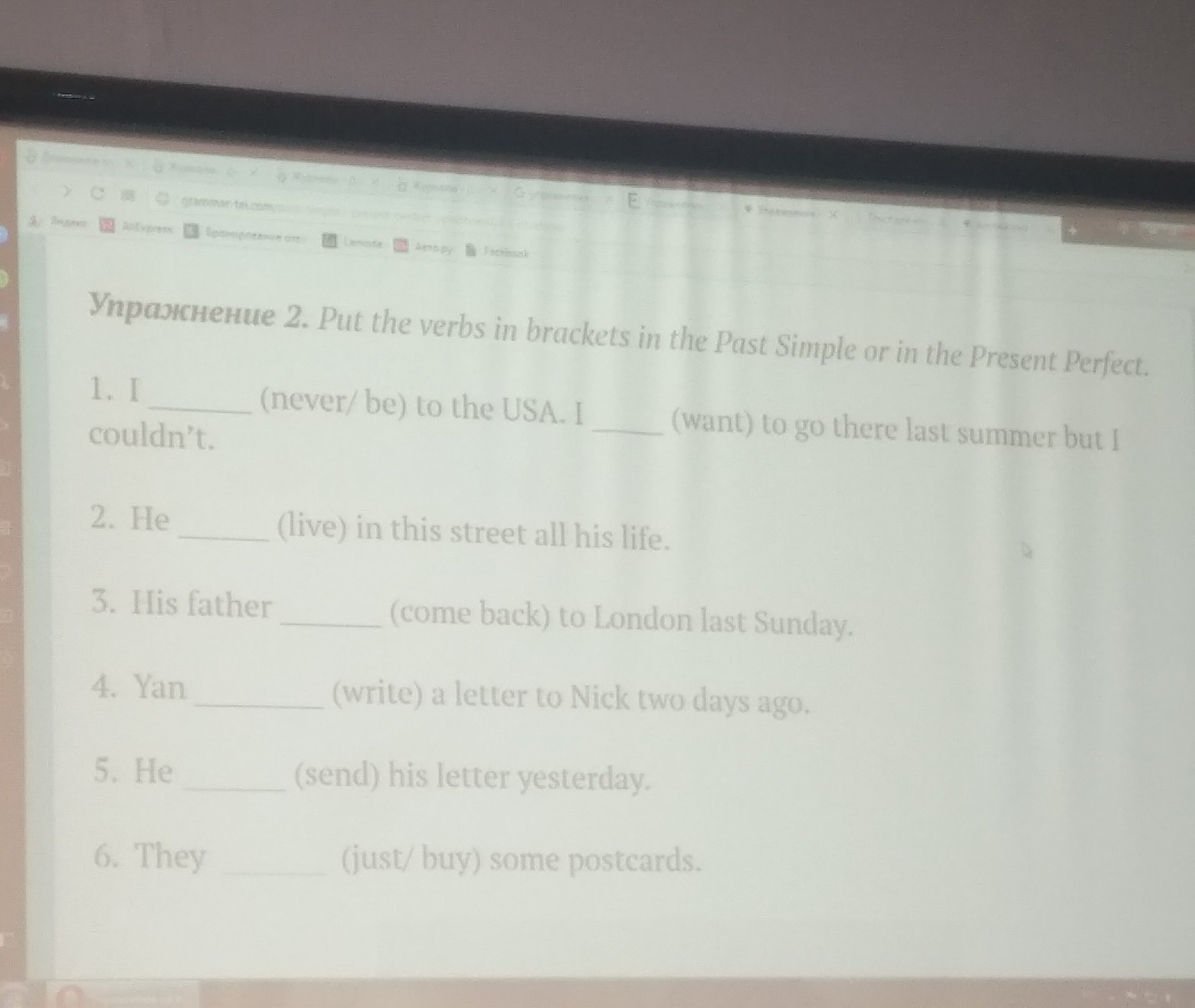 пожалуйста помогите надо раскрыть скобки и поставить глагол в Past Simple или Preseht Perfect
