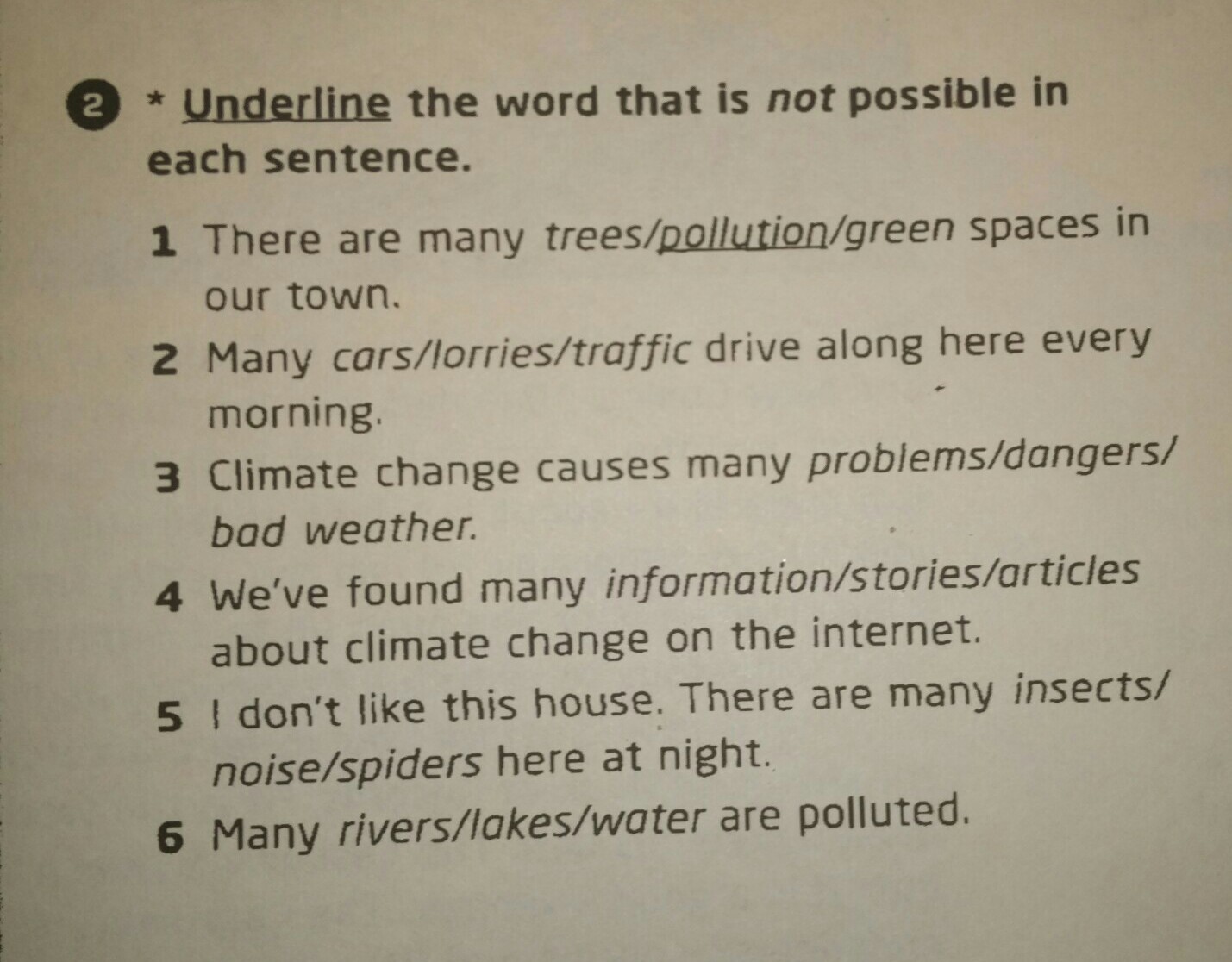 Traffic, bad weather, information, noise, water