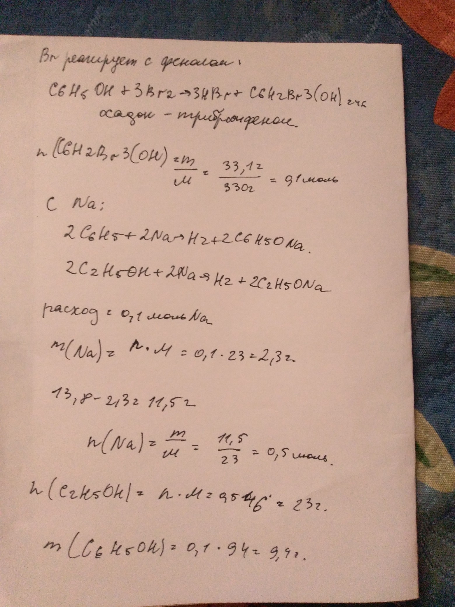 ПРОСТО СЛЕЗНО УМОЛЯЮ!!! В результате взаимодействия 20 г смеси этилового спирта и фенола с избытком бромной воды образовался осадок массой 33,1 г. ОПРЕДЕЛИТЕ КОЛИЧЕСТВЕННЫЙ СОСТАВ ВЫХОДНОЙ СМЕСИ.
