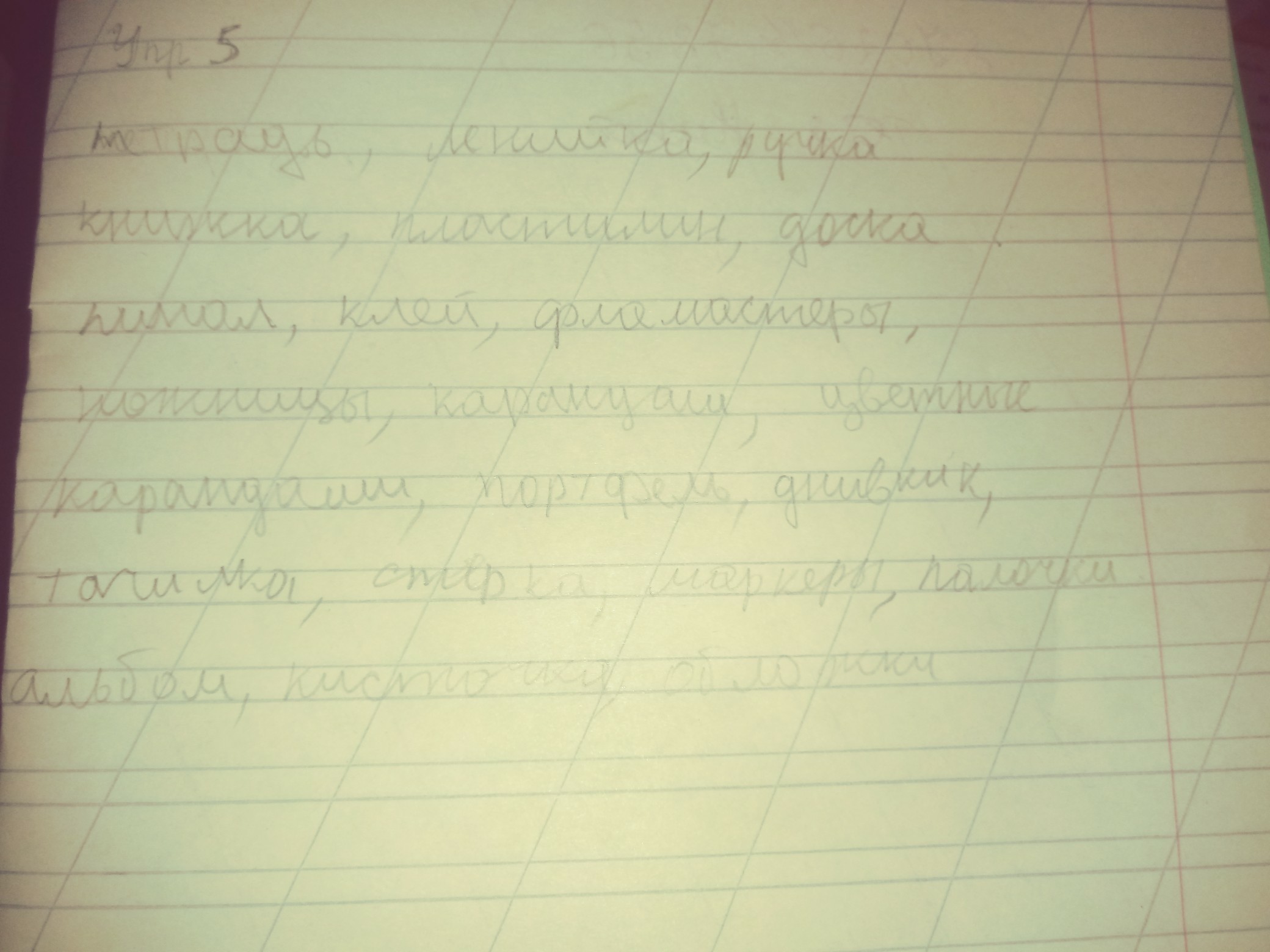 тет-радь уд а, ли-ней-ка уд. е, руч-ка уд у, книж-ка уд и, плас-ти-лин уд на и 3 слог , дос-ка уд а, пе-нал уд а, клей уд е, фло-мас-те-ры уд а, нож-ни-цы уд о, ка-ран-даш уд а 3 слог, цвет-ны-е уд ы ка-ран-да-ши уд и, порт-фель уд е, днев-ник уд и, то-чил-ка уд и, стер-ка уд е, мар-ке-ры уд а, па-лоч-ки уд а, аль-бом уд о, кис-точ-ка уд и, об-лож-ки уд о 2 слог