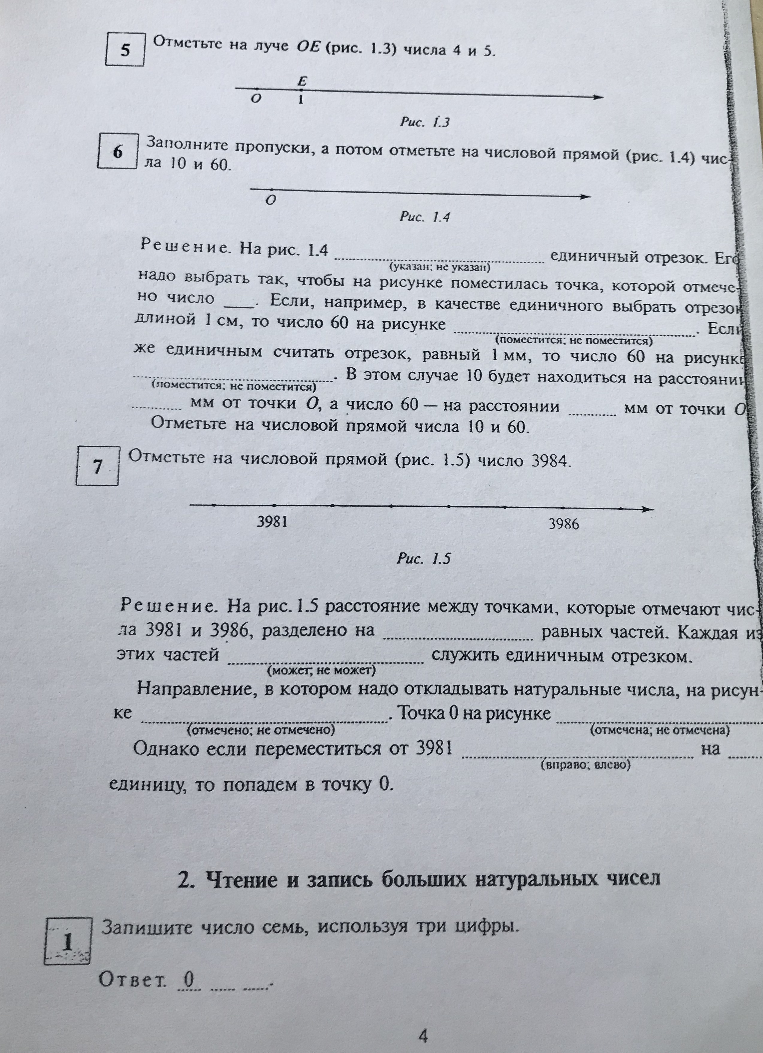 6)На рисунке не указан единичный отрезок ,его надо отметить так, чтобы на отрезке поместилось число 60. Если в качестве единичного отрезка взять 1 см , то число 60 не поместится. Если же единичный отрезок взять 1 мм, то число 10 будет отмечено на отрезке на расстоянии 10 мм,а 60 на расстоянии 60 мм от 0 .