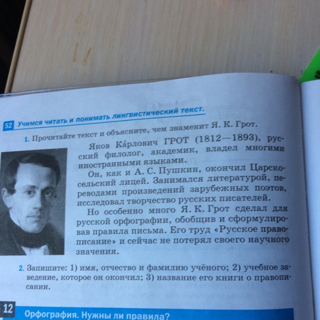 Осн. мысль:Я. К. Грот много сделал для русской орфографии.