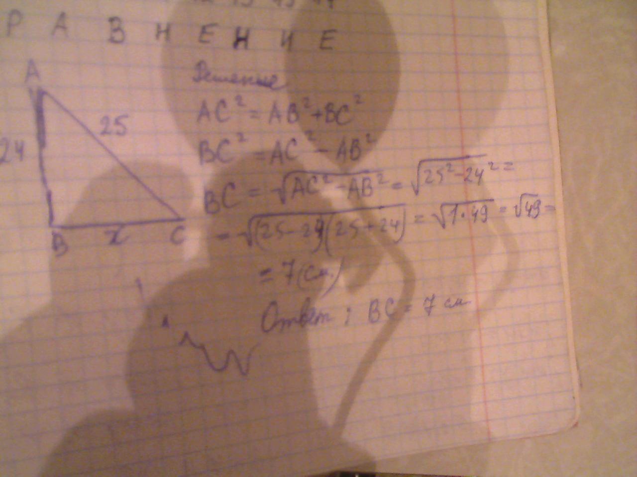 в прямоугольном треугольнике гипотеза с=25 см один из его катеров а =24 см найдите другой катет b