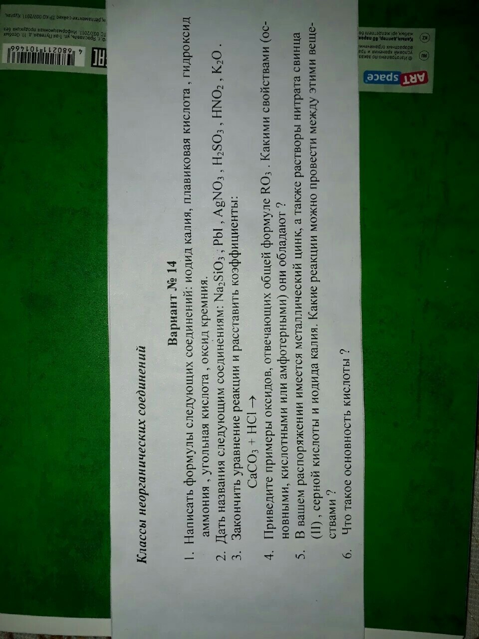 2. метасиликат натрия, иодид свинца, нитрат серебра, азотистая кислота, оксид калия