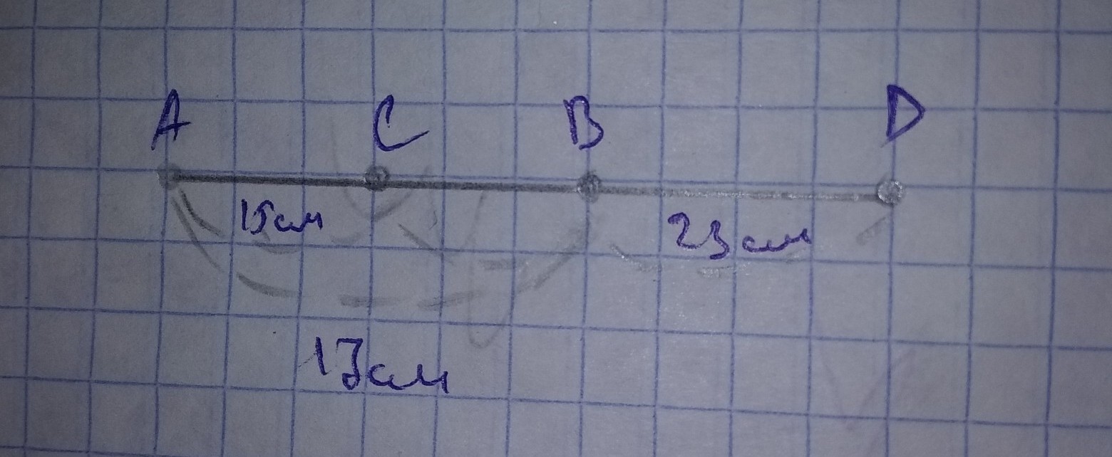 Пж помогите какова длина А и Д если А и В 17 см. А и С 15 см. В и Д 23 см