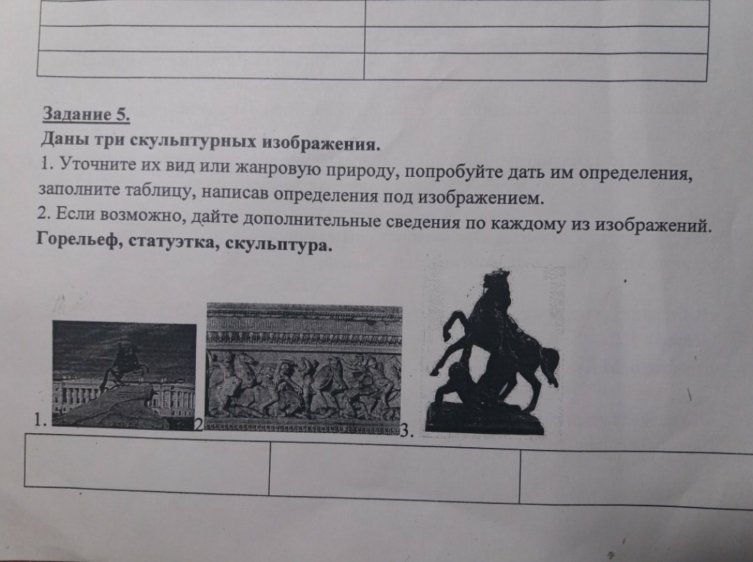 - в скульптуре разновидность выпуклого рельефа. В отличие от барельефа, в горельефе изображения (фигуры и предметы) возвышаются над плоскостью фона более чем наполовину своего объема и даже могут восприниматься почти как полнообъемные, лишь соприкасающиеся с плоскостью. Горельефы часто используются в архитектуре.Статуэ́тка (фр. statuette, от лат. statua — маленькая статуя) — небольшая скульптура, выполненная из дерева, кости, глины, камня, металла и других материалов, изображающая антропоморфные образы, фигуры животных, неодушевлённые и абстрактные предметы.Скульптура - это не просто один из видов изобразительного искусства, а один из важнейших его элементов, главной особенностью которого является то, что произведения имеют объемную форму, изготовленную из твердых или пластичных материалов.