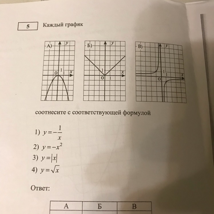 1). график номер один - это парабола с ветвями направленными вниз ( так как коэффициент (а) равен -1) .