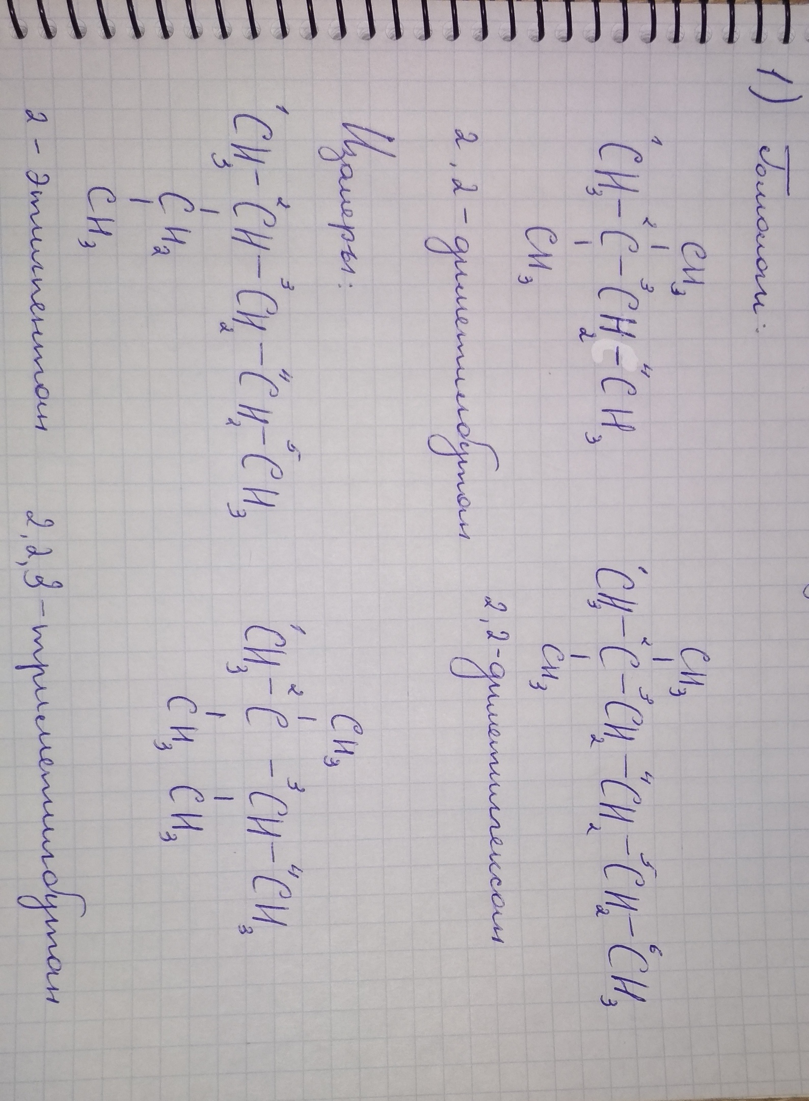 Написать формулу двух гомологов и двух изомеров. Дать им название