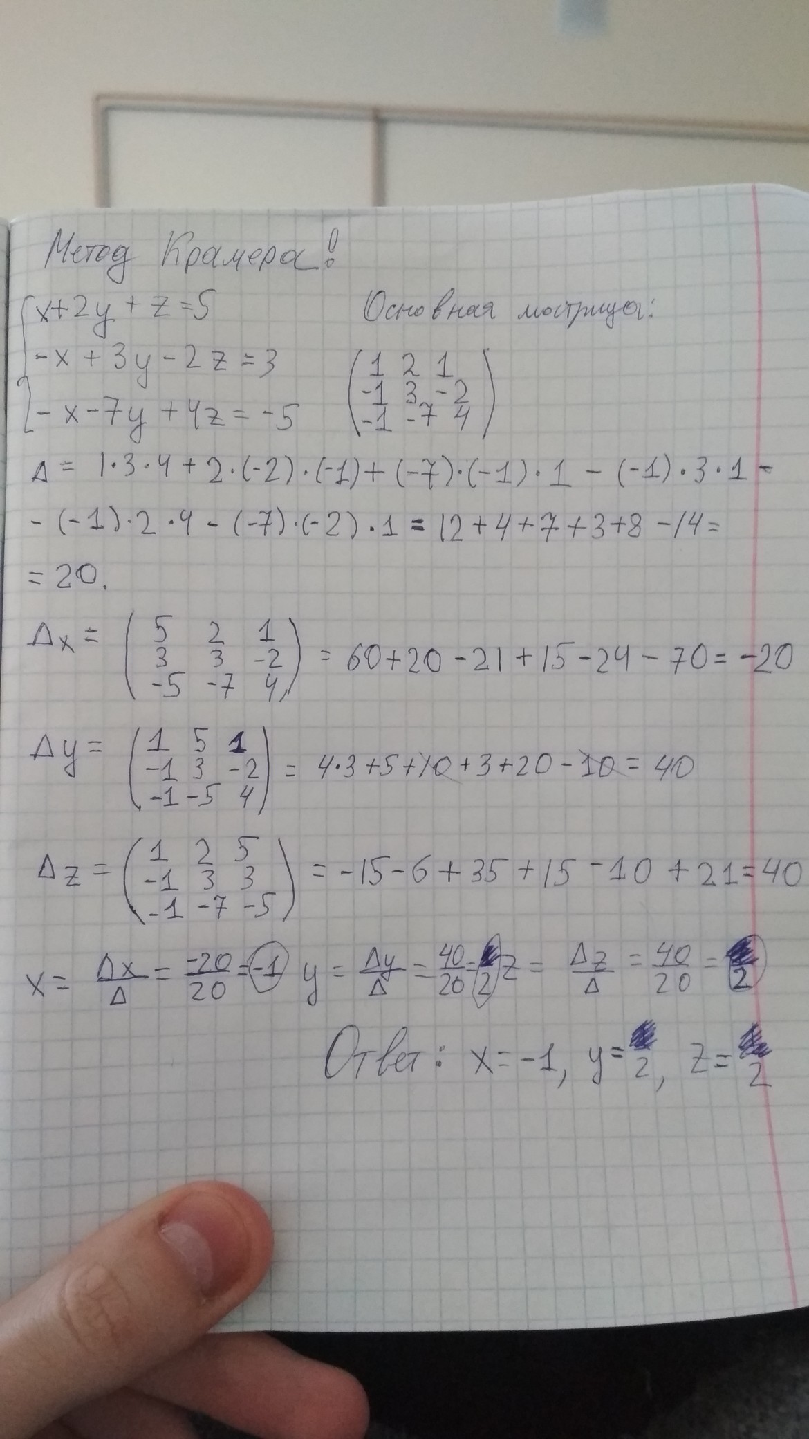 решить методом крамера