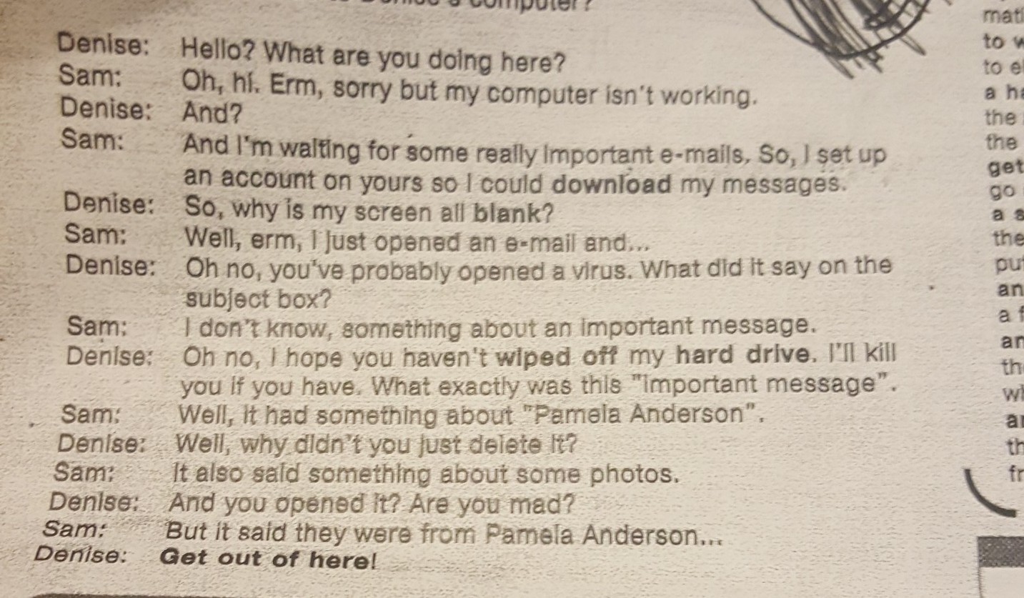 Д.: О нет, надеюсь, ты не стёр всё с жёсткого диска. Если да, я убью тебя. Что точно было в этом "важном сообщении"?
