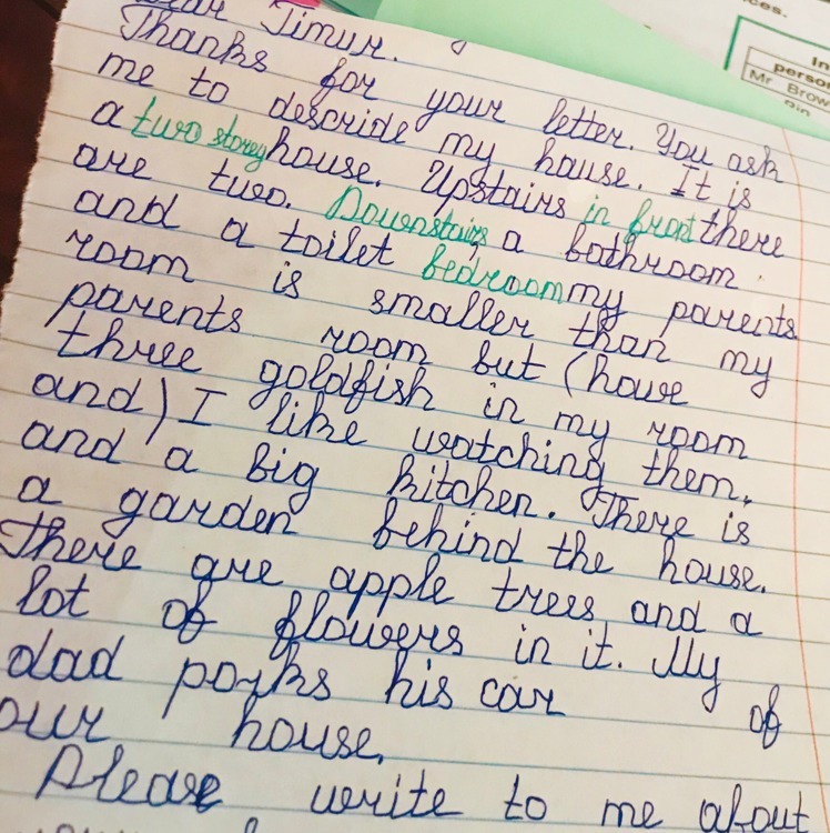 Спасибо тебе за твое письмо. Ты спрашивал меня чтобы я рассказал о своем доме. Мой дом это дом(я незнаю как обрадовать предложение, но оно означает что твой дом это ДОМ, а не квартира)